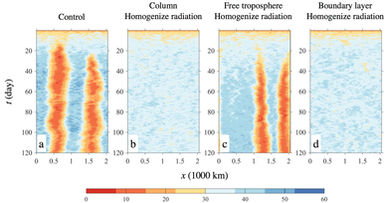 The Madden-Julian Oscillation (MJO) has long been a mystery in tropical atmospheric dynamics. A paper in GRL uses the E3SM-MMF, a superparameterized climate model, to investigate whether radiative feedbacks are essential for simulating the MJO. Through vertically resolved MSE diagnoses and mechanism-denial experiments, the study demonstrates that the MJO can still self-emerge and maintain its characteristic structures even in the absence of radiative feedbacks.